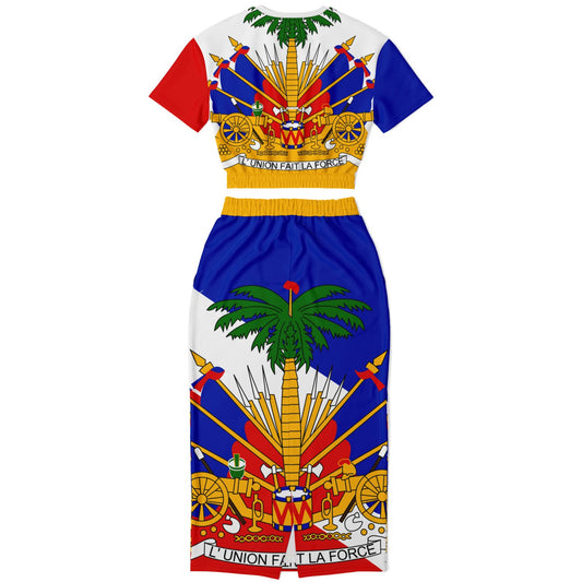ESCUDO DE ARMAS DE HAITÍ Sudadera recortada de manga corta y falda larga con bolsillo