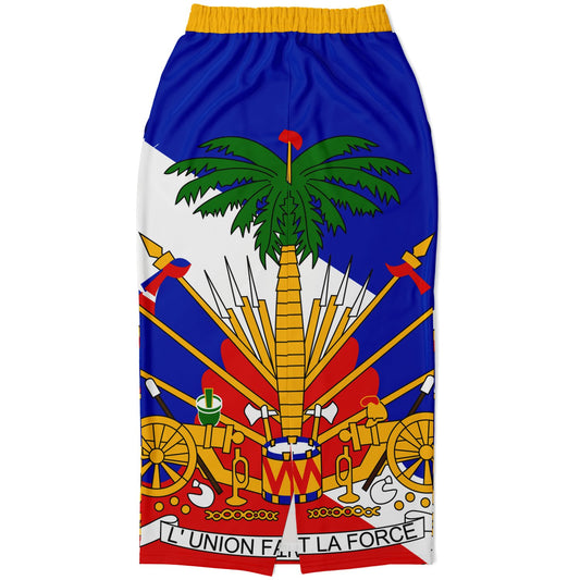 34-Haitian Heritage Pencil Skirt - Women's Mid-Waist Skirt with Flag Design