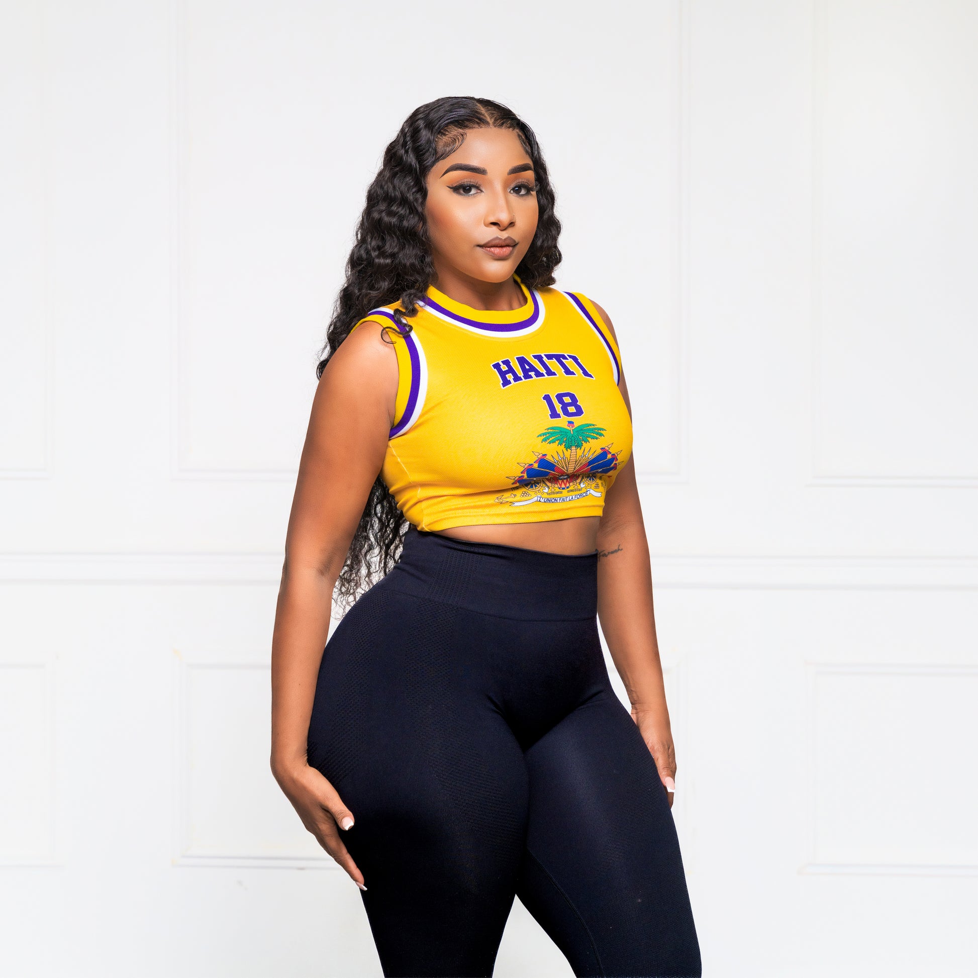 Celebrate your Haitian heritage with this eye-catching basketball-inspired crop top featuring the vibrant colors of the Haitian flag.